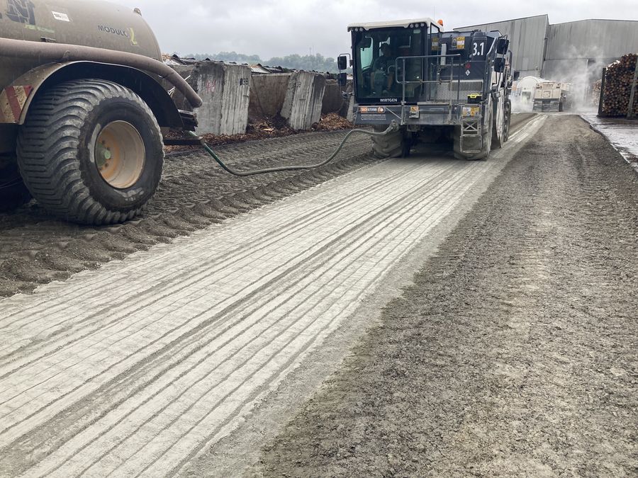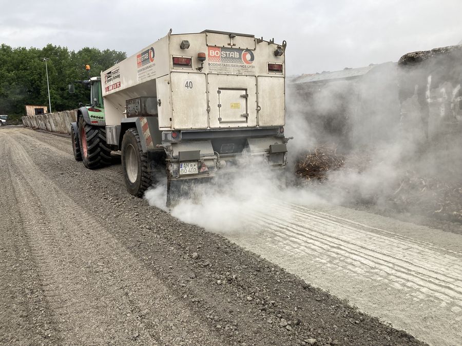 Durch das Einmischen von hydraulischen Bindemitteln, wie zum Beispiel Zement, hydraulischer Tragschichtenbinder oder Mischbindemittel, in den oberen Bereichen des Unterbaus oder des Untergrundes (Erdplanums) wird eine Verbesserung der Tragfähigkeit und der Frostsicherheit des anstehenden Bodens erreicht.