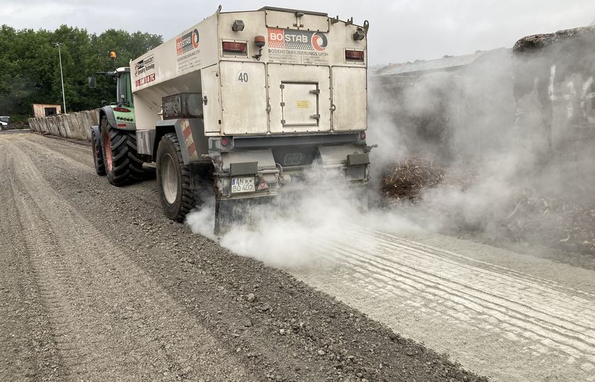 Mit einer Bodenverfestigung werden die Tragfähigkeit und die Frostsicherheit des Bodens erheblich verbessert. Die Folge ist eine Einsparung der mineralischen Tragschichten und Frostschutzschichten.