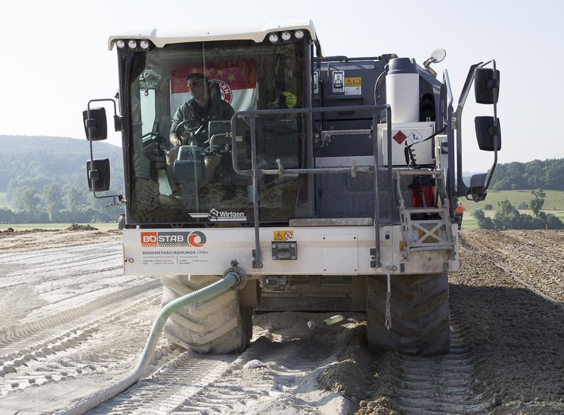 - Kontrollierte Wasserzugabe über den Mischraum der Bankettfräse.